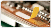 以聚酰亚胺薄膜为基材,涂以特种压敏胶而成,耐化学性和耐磨性,最高可耐高达320℃的温度,抵抗各种助焊剂、熔融剂和清洁剂等化学物质以及高温和磨损的极端恶劣的环境,确保在各种极端恶劣苛刻应用环境中保持卓越性能。在室温下,标签的压敏性较好,高于200℃后,标签的耐化学性和耐磨性表现更出色。是专为印刷电路板用字符或条形码标签而设计。因为它可以经受生产印刷电路板过程中所面临的焊接剂、熔融剂等的侵蚀。目前厚度主要是25u、50u两种。